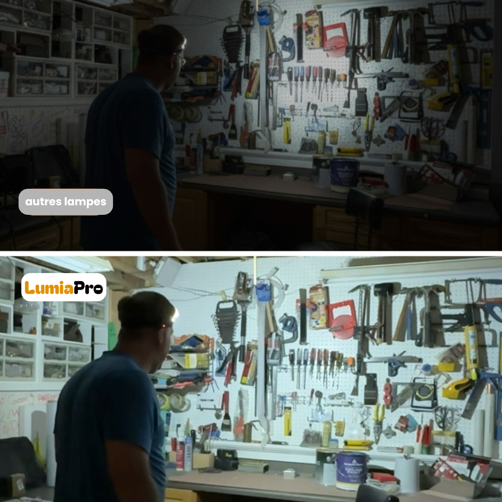 La lampe LumiaPro éclaire partout devant vous, pas seulement là ou vous regardez